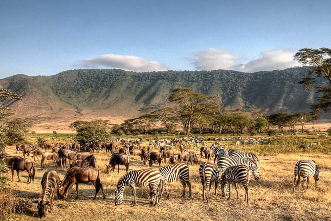- Lake Manyara Option: Game drive in Lake Manyara National Park, known for its scenic beauty, tree-climbing lions, flamingo-covered lake, and lush groundwater forests.
